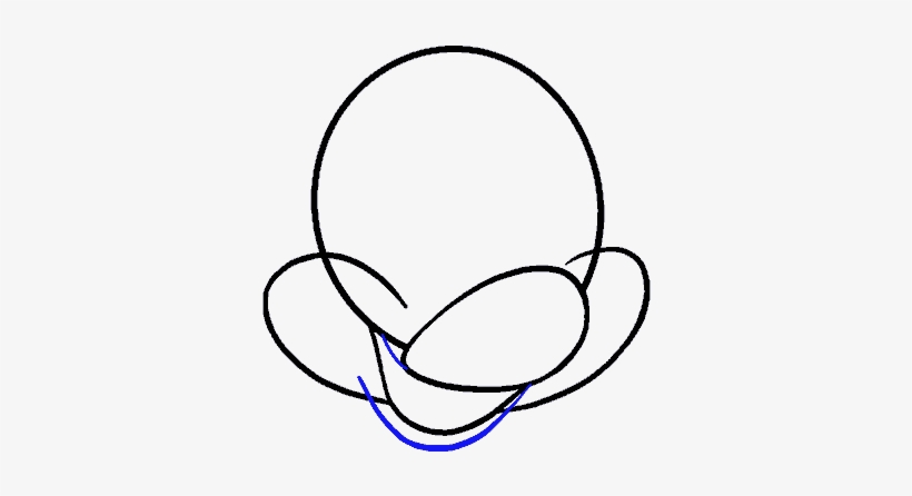 Draw the bottom outline of the characters head. They are round and big. Draw the nose using an oblong.